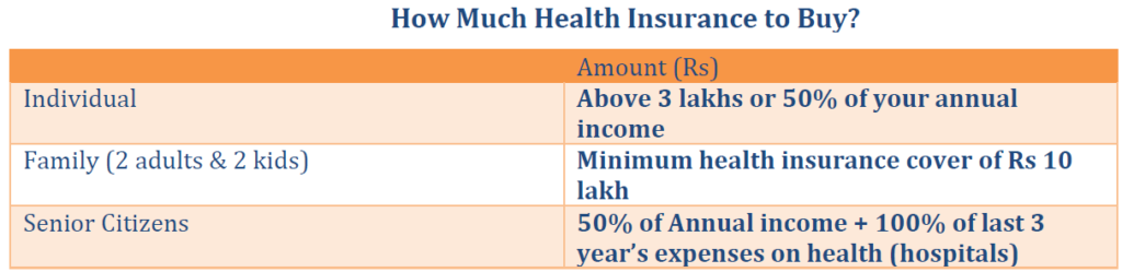 This is a broad idea of adequate health coverage. However, you must analyse your family history, age, pre-existing health problems, and healthcare costs in the city you are residing in.