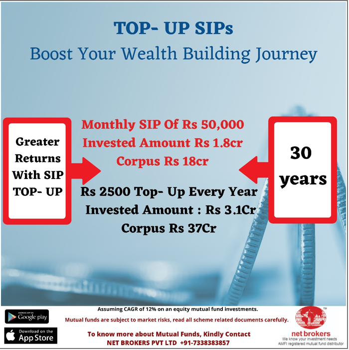 The SIP Top-up amount can be either a specific percentage of your original SIP amount or even a predetermined fixed amount. The frequency of increasing the amount is typically half-yearly or annual.