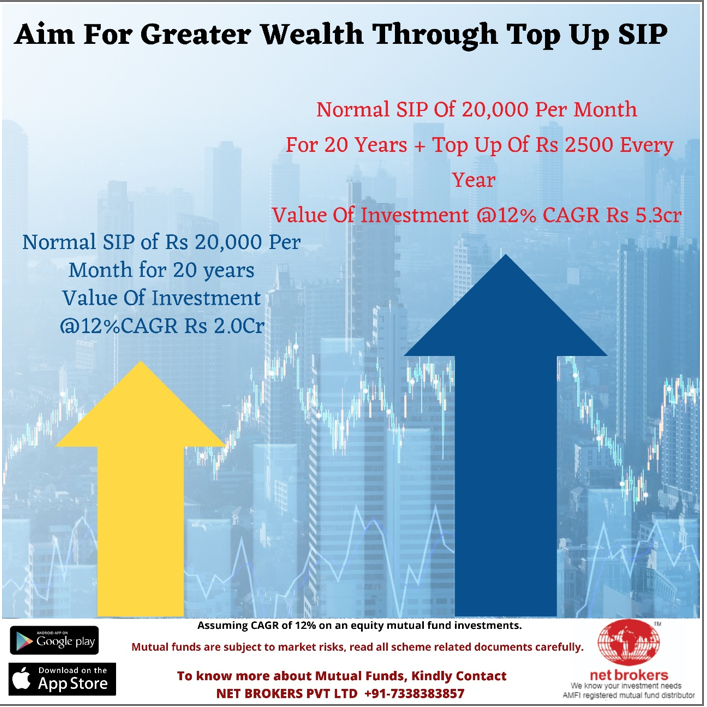 On the other hand, if he starts his SIP of Rs 20,000 in the same mutual fund scheme but with a commitment to top up his SIP amount by Rs 2500 every year, he would be able to accumulate a corpus amount of Rs 5.3cr in the same time period of 20 years.