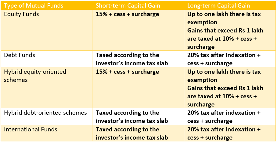 There is a variety of Mutual Funds available in the market for different types of investors based on the risk appetite and investment goals. Taxation on Mutual Funds depends on what type of funds you have invested in. For taxation purposes, Mutual Funds are divided into 2 main categories: Equity Funds and Debt Funds.
