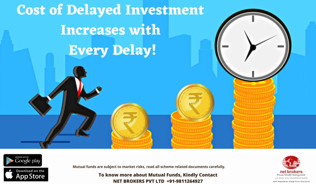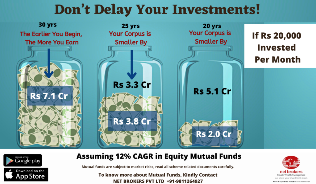 Delay in investment could cause lower returns as you lose on the magic of compounding. So, if you start late you have to invest a larger sum of money to achieve your financial goals.